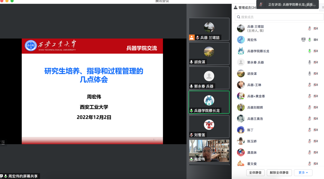开展研究生导师培训活动。本次活动采用线上的方式,特邀材化学院博导(硕导)周宏伟教授做专题报告。本次培训由教学院长蔡长龙主持,院长郭永春、全体研究生导师参加并交流。