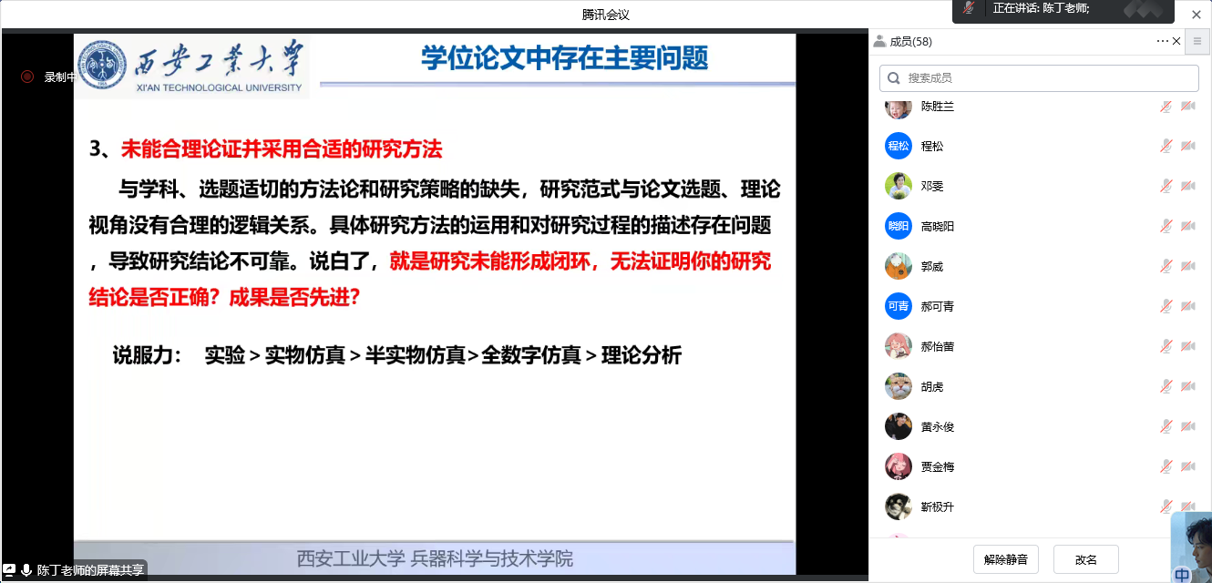 硕士研究生学位论文写作规范讲座在线上顺利举行,六十余名研究生参加了讲座。