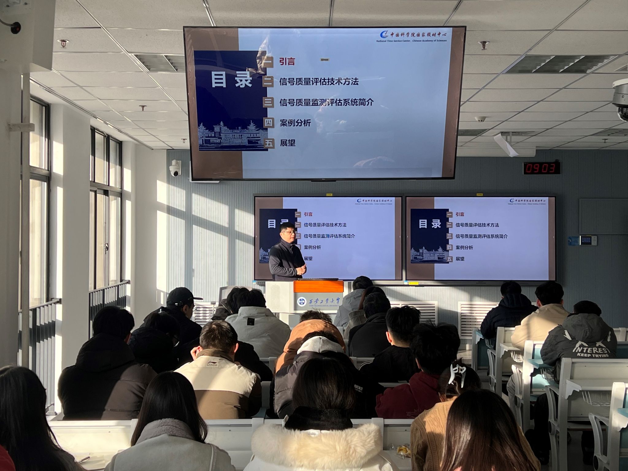 师生作题为“GNSS空间信号质量监测评估”的学术讲座。讲座由学院党委书记蔡长龙主持,50余名师生聆听了讲座。
