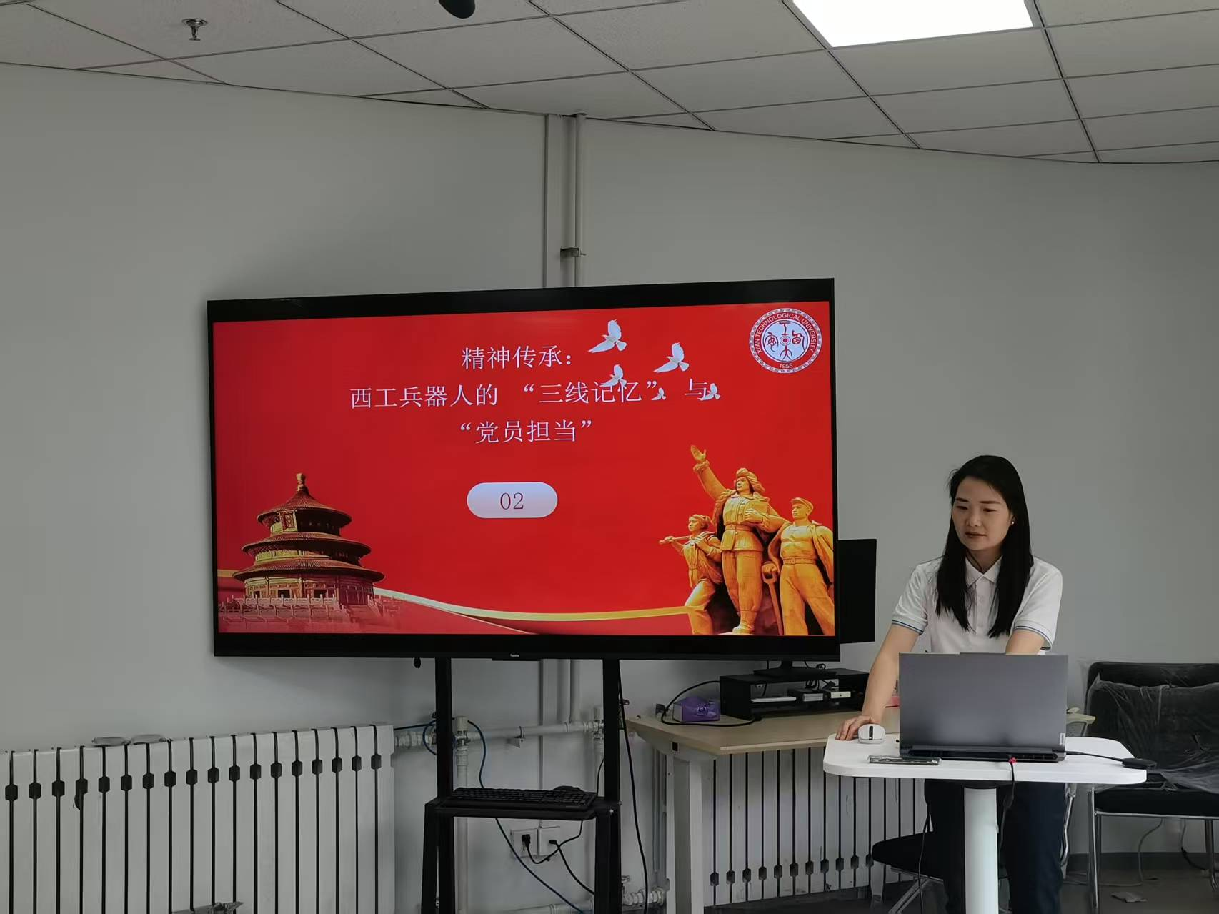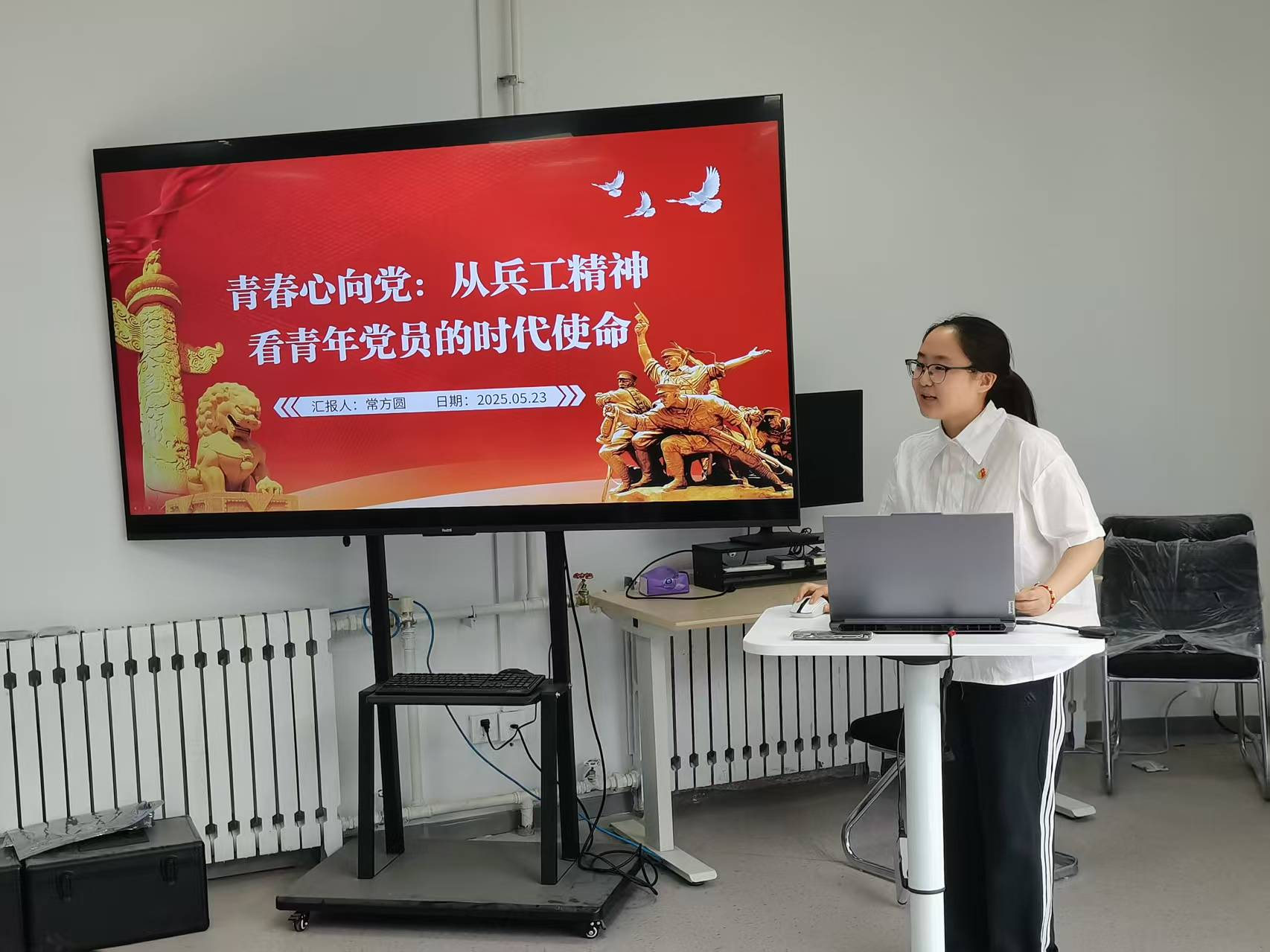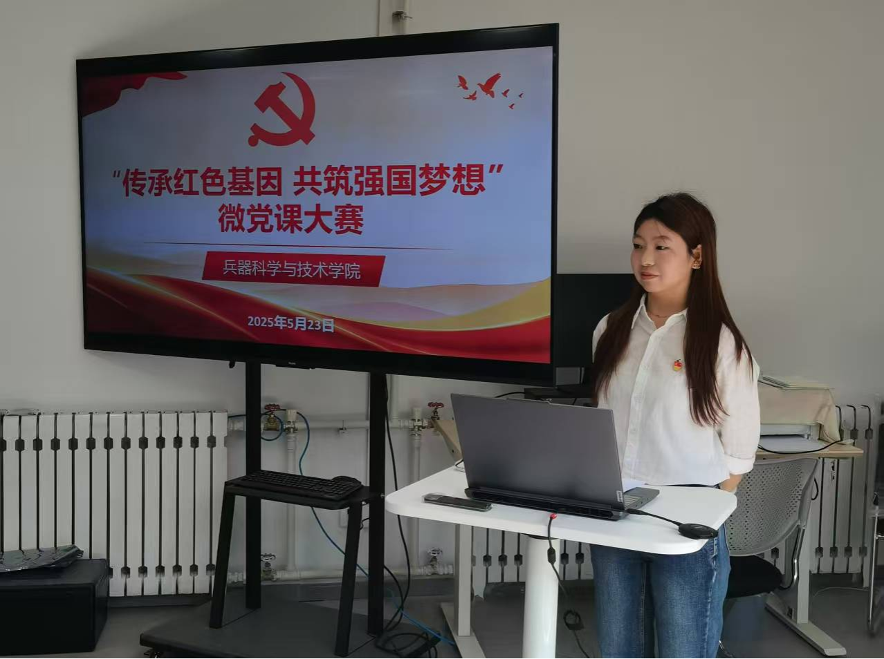 党委副书记梁伟樯、院党委组织员陈丁、马克思主义学院王小平三位老师应邀担任本次赛事评委。兵器科学与技术硕士生党支部副书记陈漂洋主持本次比赛。