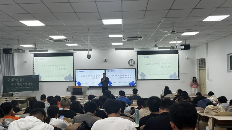 在教2-103召开考研动员大会,会议由王国栋主持,参加会议的有受邀的考研老师以及2021级、2022级本科生100余名同学参加了大会。