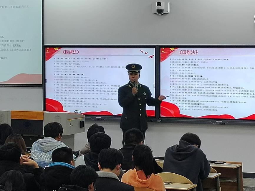 在此次讲座中,校大学生军事协会为同学们讲解了军事科技相关理论知识,强调国家安全的重要性,保护家国安全、保守国家秘密是每个中华人民共和国公民的义务,对于身为兵工院校的学生,更应该永远把国家放在心中第一位,并讲解时下国际环境与中国自身情况。此外,校国旗护卫队为大家讲解了《中华人民共和国宪法》中的《国旗法》,深刻讲述中华人民共和国五星红旗的庄严地位,以及国旗护卫队的光荣使命。