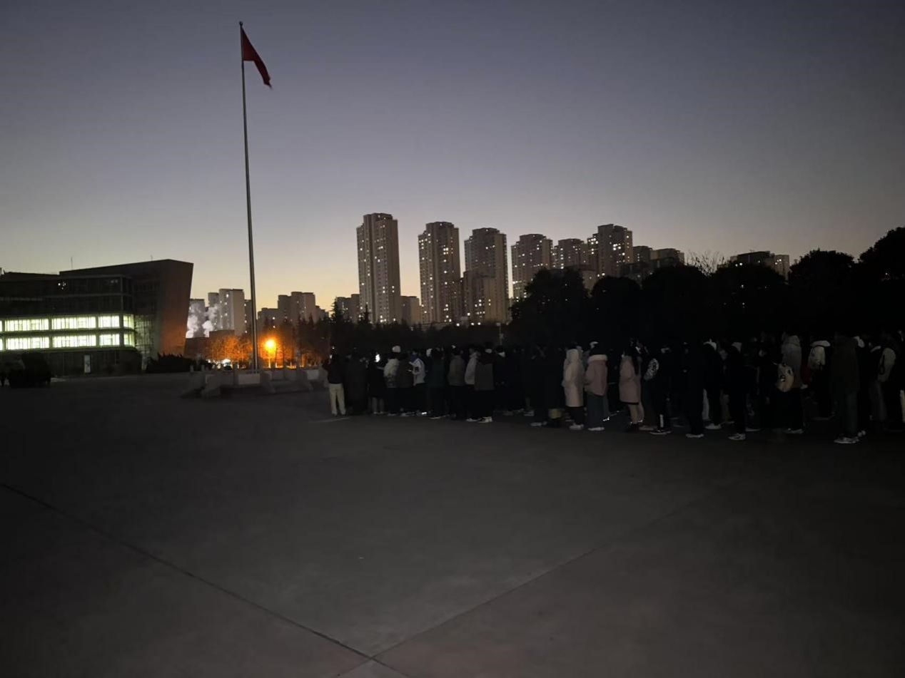 全体学生参加学校组织的周一升旗仪式。