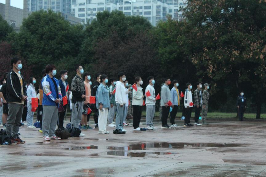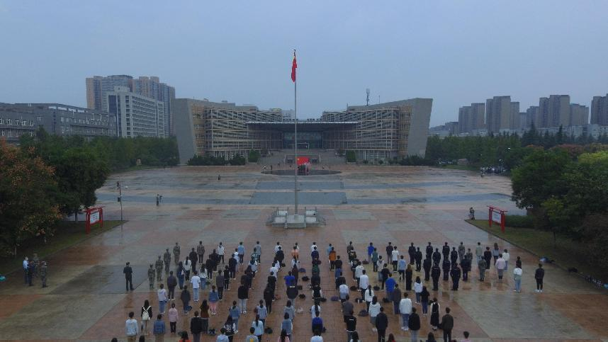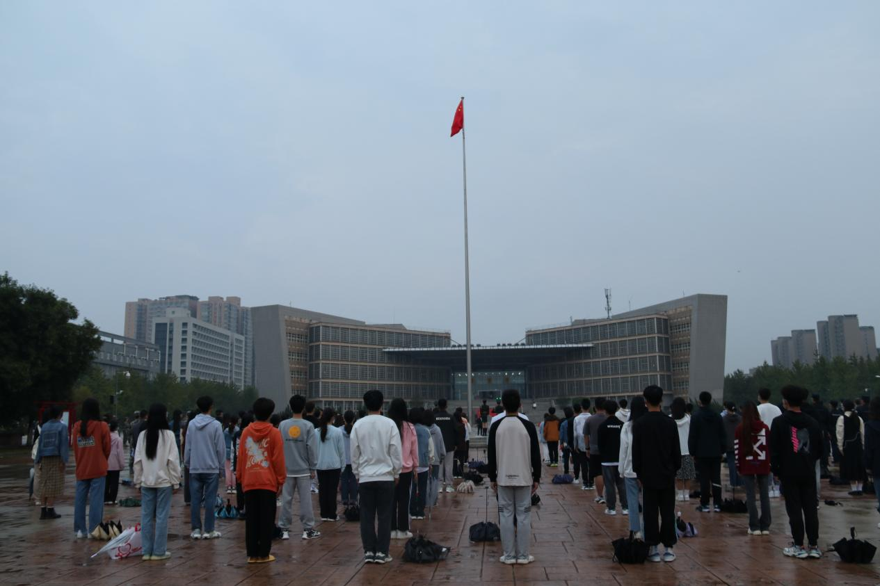 晨曦微露,蒙蒙细雨中,全体成员准时来到广场,在工作人员的组织下,按照学校疫情防控要求,全体观礼人员井然有序的排列在广场上,一番准备过后,升旗仪式正式开始。
