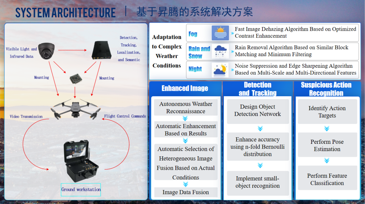 周清、吴杰、肖锋、蔡长龙、王琳、刘露等几位教师共同指导,贾宇龙、陈漂洋等15名同学参与。该项目的Smart Sentinel是基于华为昇腾AI平台的机载智能要地监测系统,针对核电站、航天发射场等重要设施面临的低空无人机入侵威胁,通过集成光电吊舱、无人机平台、昇腾AI模块和地面工作站,实现全天候多角度实时监控与自动化目标检测、跟踪、定位及警示驱离。系统采用全国产化硬件(华为昇腾处理器)与自主算法体系,具备技术自主可控、机动性强、快速反应、协同能力强等优势,可适应复杂环境。“智慧哨兵”项目的获奖,充分体现了该团队在前沿人工智能技术与国家重大基础设施安全需求紧密结合的创新能力。