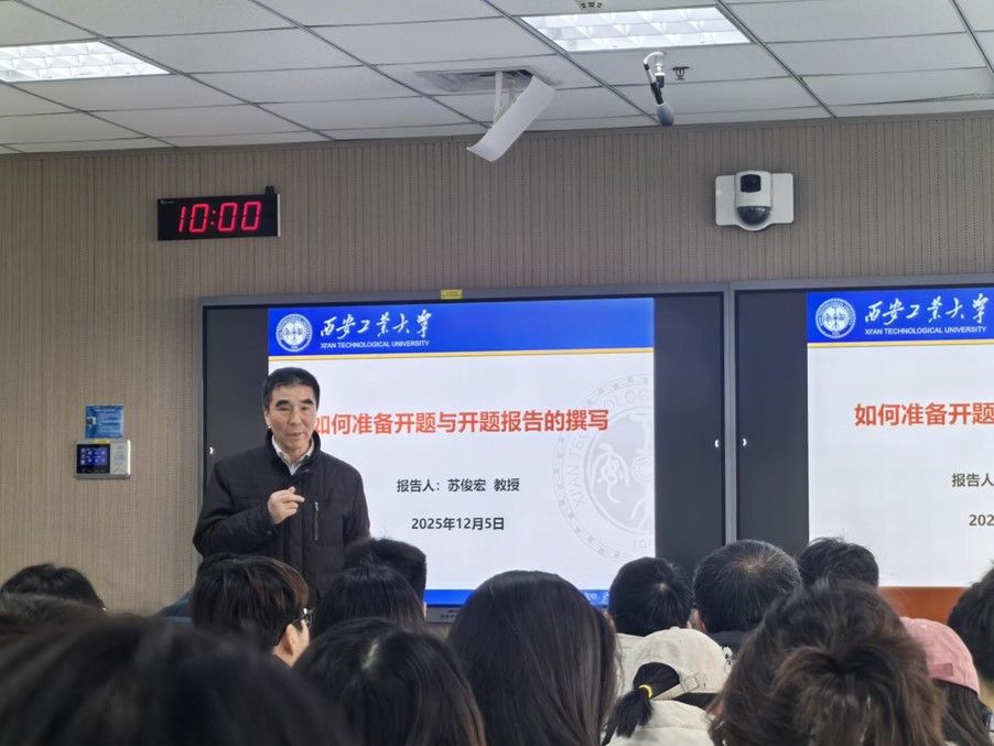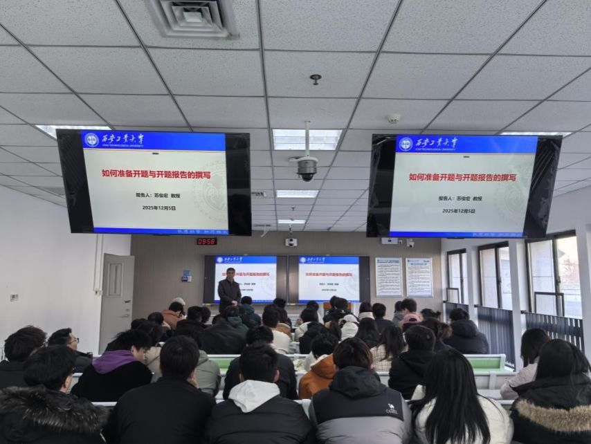 苏俊宏在讲座中围绕学位论文开题的关键环节展开指导。他指出,选题应注重具体性、创新性与可行性。针对开题过程中可能遇到的常见困难,他提出了切实可行的解决思路。最后,他结合往届学生案例,剖析了典型问题与改进方向,并叮嘱同学们认真对待开题工作,为后续研究与论文撰写奠定坚实基础。
